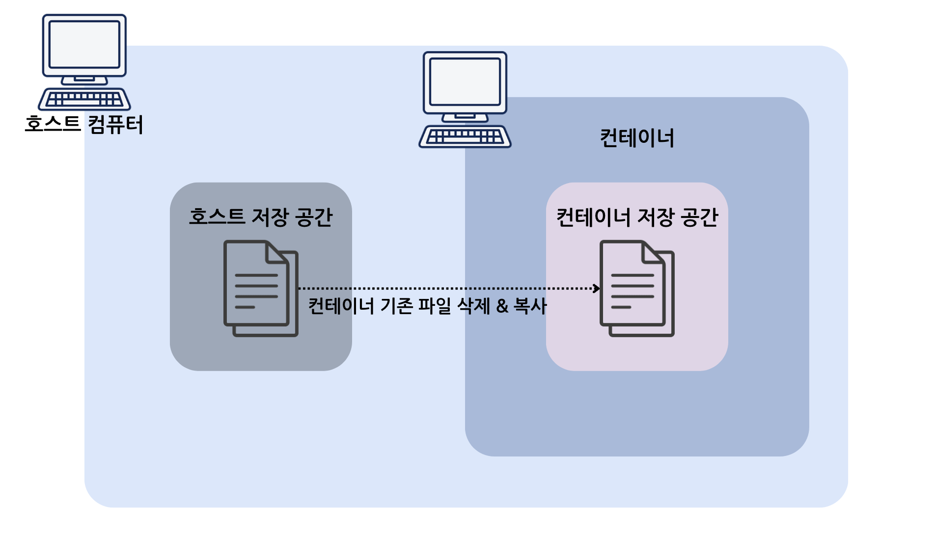 - [호스트의 디렉토리 절대 경로]에 디렉토리가 이미 존재할 경우, 호스트의 디렉토리가 컨테이너의 디렉토리를 덮어씌운다.