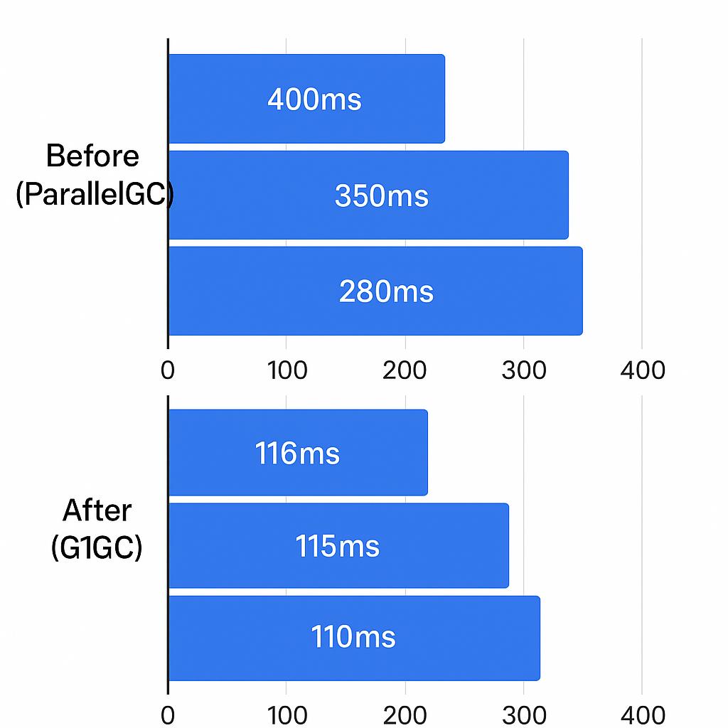 이 글은 그때 겪었던 장애 상황부터, GC 원인 분석, 그리고 ParallelGC에서 G1GC로 튜닝하면서 실제로 STW를 줄였던 과정을 정리해보려고 쓴다.