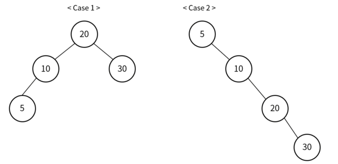 Case 1) 이진 탐색 트리에 삽입되는 순서 : 20 → 10 → 30 → 5