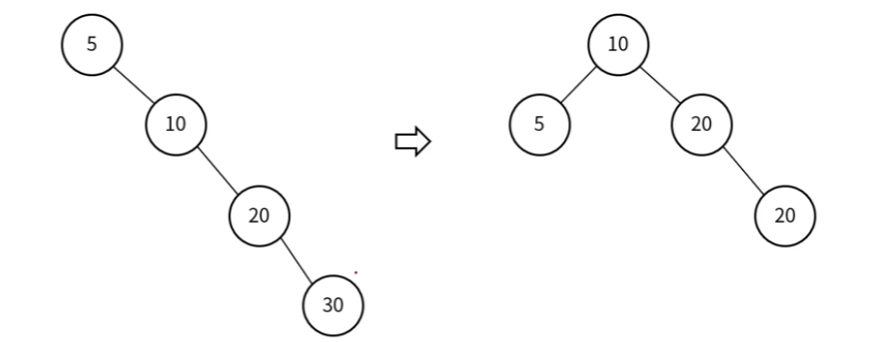 Case 2) 이진 탐색 트리에 삽입되는 순서 : 5 → 10 → 20 → 30